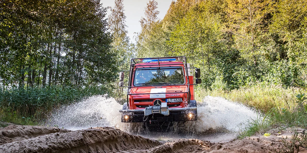 As a result of climate change, the number of vegetation fires is on the rise worldwide. At the same time, floods occur more frequently. And that has changed the daily lives of fire services. Plus, efficient and versatile drive concepts, as well as the health and safety of crews have become even more important topics. In line with these trends, decision-makers, crews and their equipment need to keep up with the increased pace. But that’s no problem at all for the Unimog. Today already, the all-rounder from Mercedes-Benz has some impressive solutions up its sleeve.