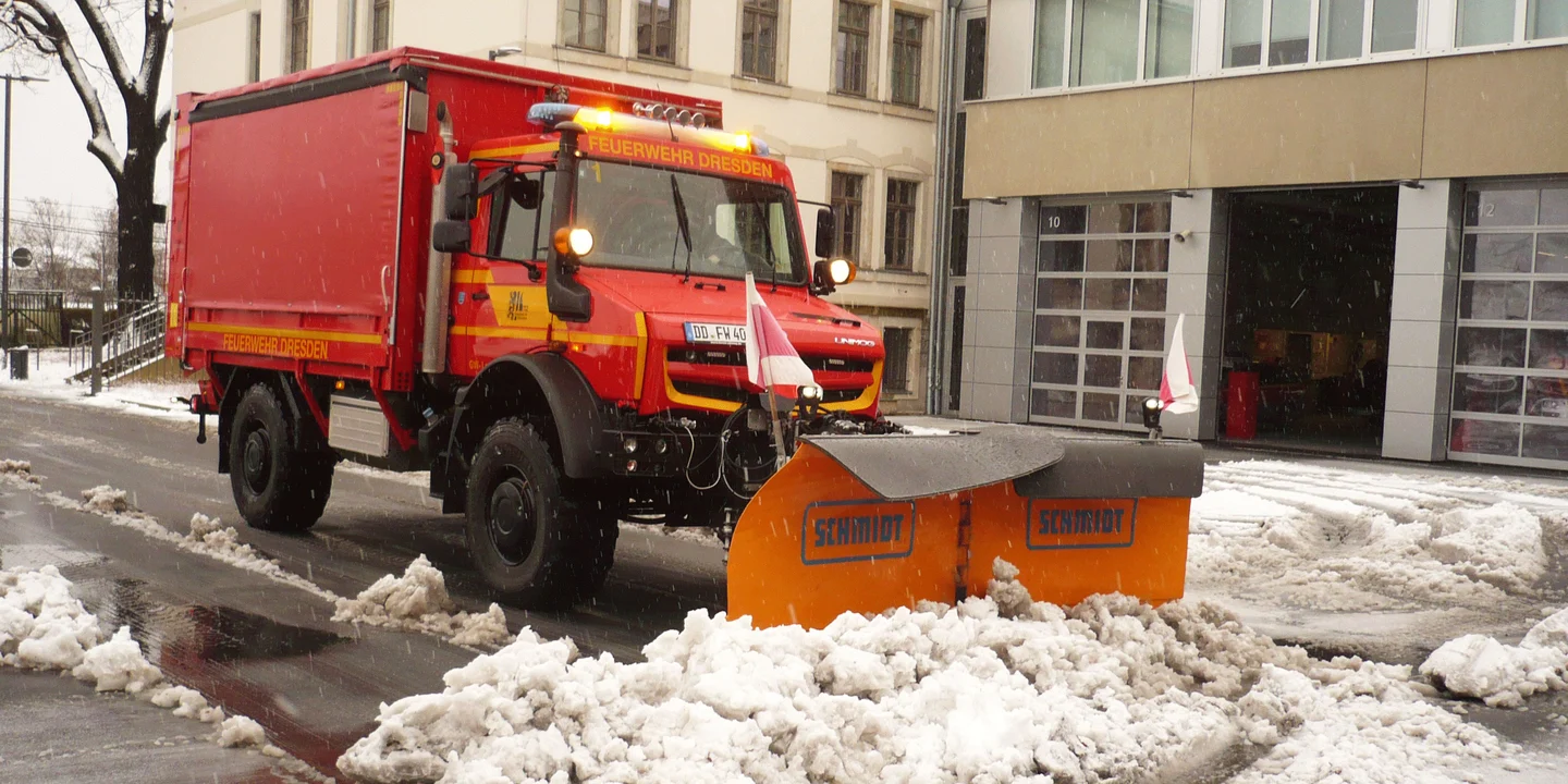Usually the snow gods are quite merciful to the state capital of Dresden. The average snow depth is quite manageable. Also the winter service is well-equipped and in normal situations reacts to the onset of winter very quickly. Therefore, as a rule, the Unimog stands in the garage without a snowplough.