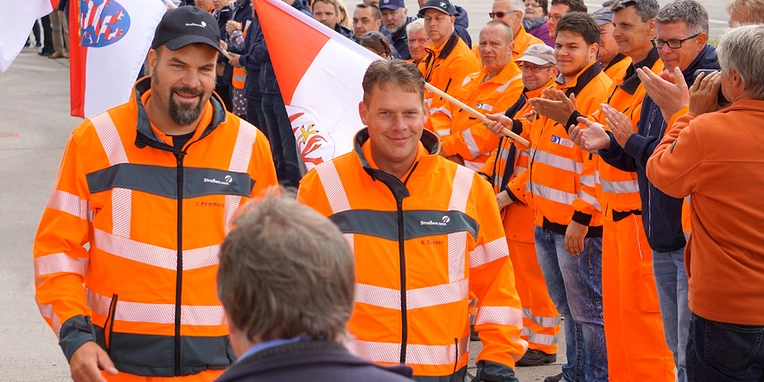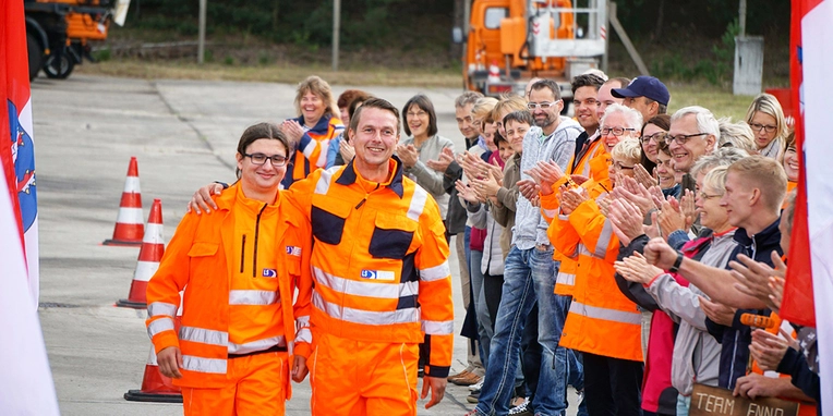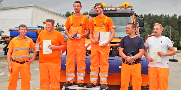 The drivers produced some exciting contests in the competition against the clock. By the end of the day the team from Brandenburg’s motorways department in Rangsdorf was literally a nose in front. Second and third places went to teams from the highways authority in Luckau (Brandenburg) and motorways department in Kamen (North-Rhine Westphalia).