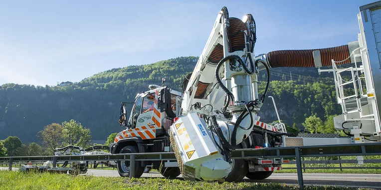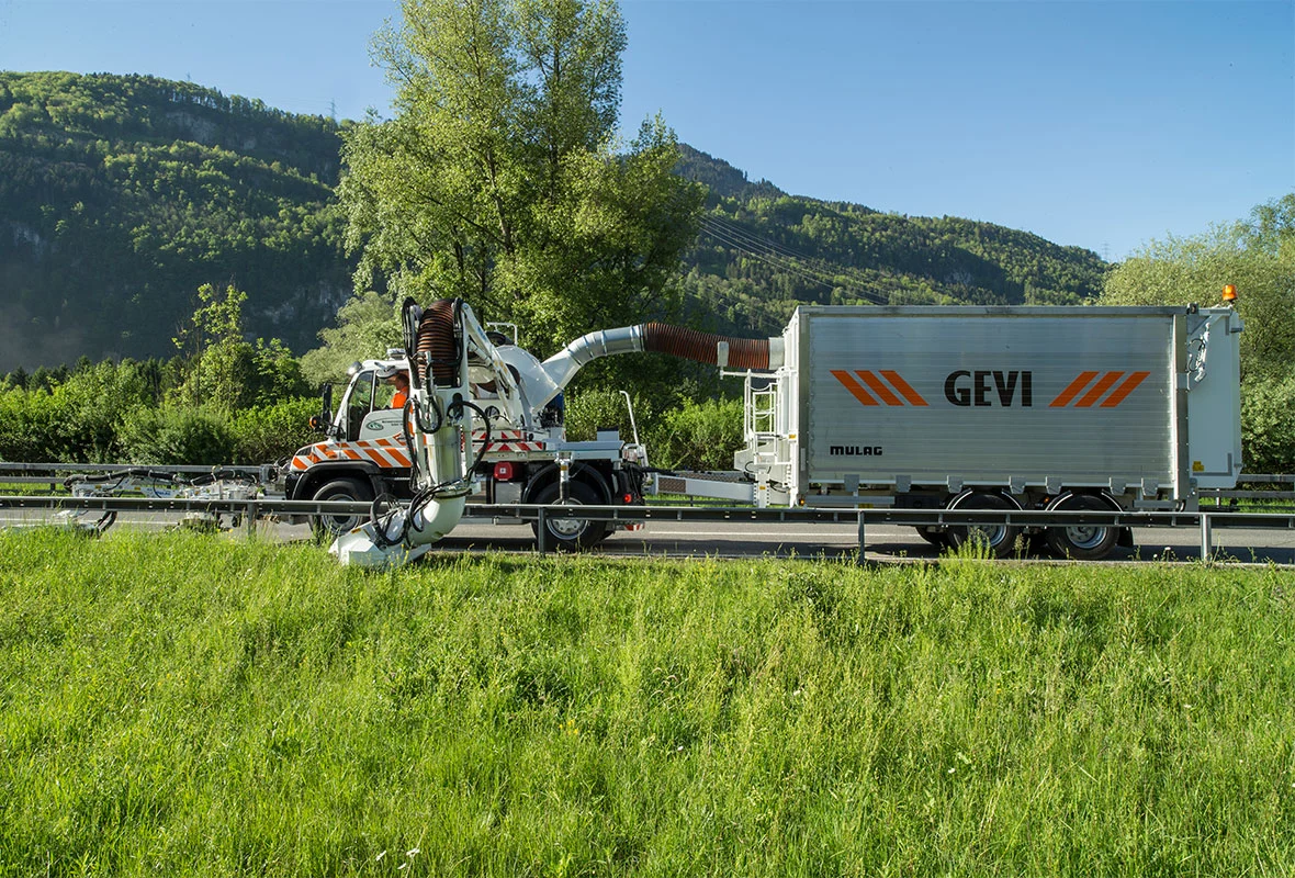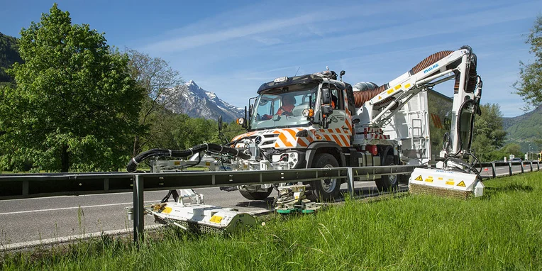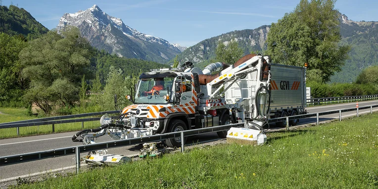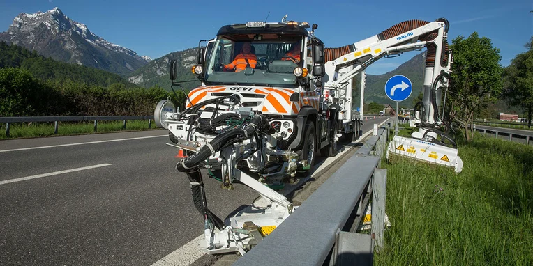 280 kilometres of roads in eastern Switzerland are the responsibility of the National Highways Region VI maintenance department (known as "GEVI") based in St. Gallen. Among the challenging tasks the department faces, alongside keeping the roads operational in winter, is maintaining the verges and embankments in the summer months. The roadside verges and central reservations equate to an area larger than 1,000 football fields in total – a huge job, which requires specialist vehicles.
