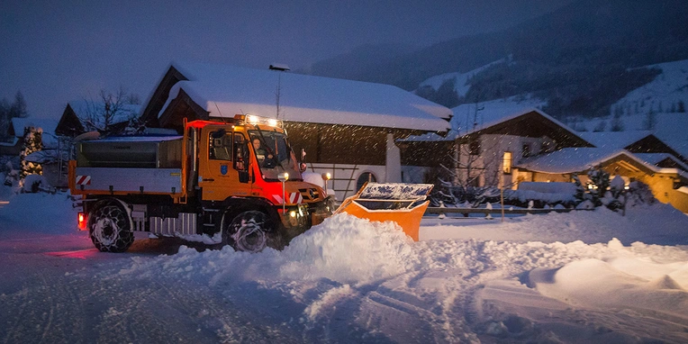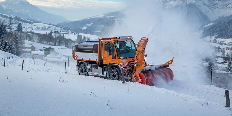 In cold winters, the Unimog is an indispensable helper in the fight against snow and ice – since 2016, that also holds true for the municipality of Leogang in the state of Salzburg. In the skiing region there, temperatures can sink as low as minus 20° C at night with 50 cm of fresh snow in a few hours being anything but a rarity. In such cases, the Unimog has to be on the road by 5 a.m. to ensure that the most frequented routes are cleared before the morning rush hour begins.
