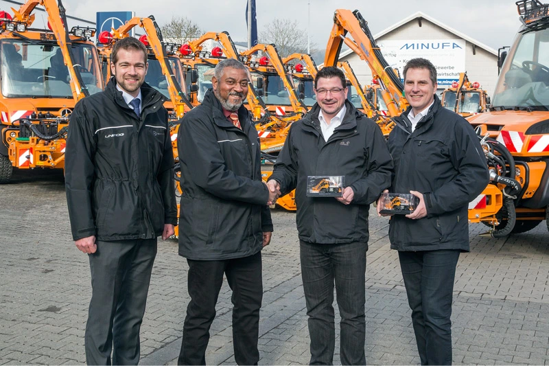 Hessen Mobil, the traffic and road management authority of the German state of Hesse, recently began using another 15 Mercedes-Benz Unimogs to maintain its roads and motorways. Twelve new Unimog U 527s and three new Unimog U 423s have now been added to the fleet of around 500 vehicles in order to guarantee an optimal flow of traffic in both summer and winter. The new special-purpose vehicles for road maintenance were handed over by Minufa, the general agency for Unimog, to 15 Hessian road and motorway maintenance depots.