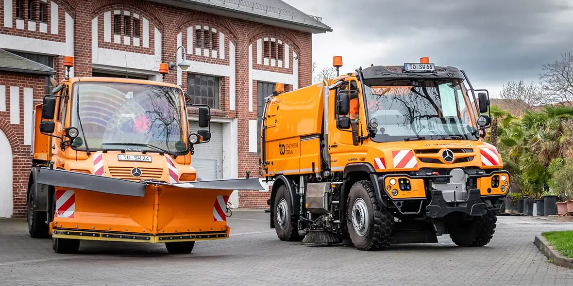Three Unimog keep the streets clean at Torgau public utilities.