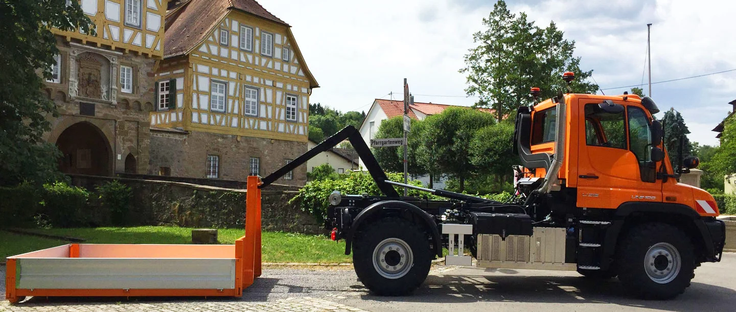 Keeping the municipal ball rolling: Unimog with HEN roll-off system.