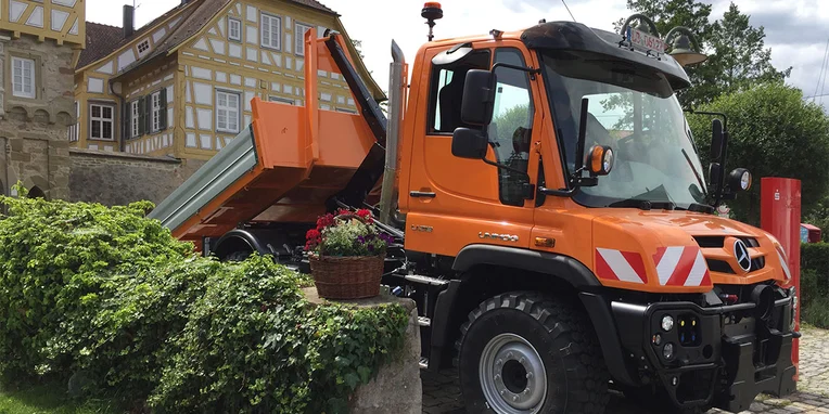 Dump boxes are used all year round for a whole variety of tasks in municipal work, from taking away branches and foliage to transporting road salt in the winter. This makes them ideal body solutions for the Unimog, which is usually in use all year round by local authorities.