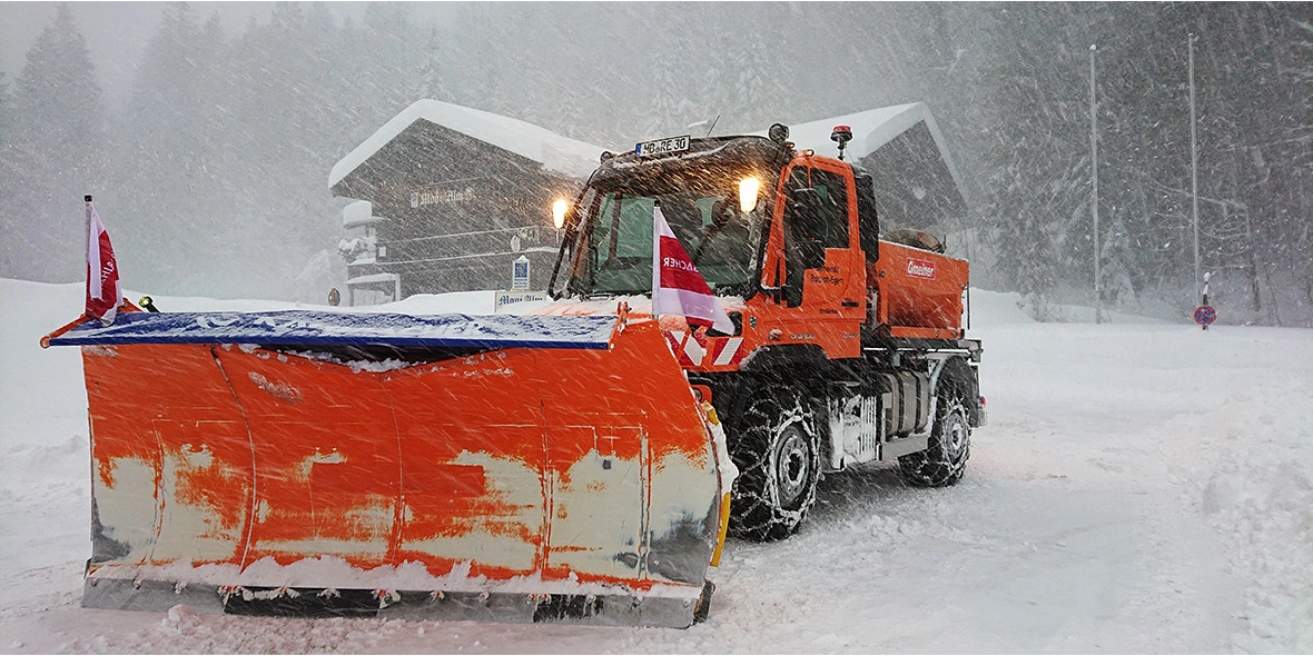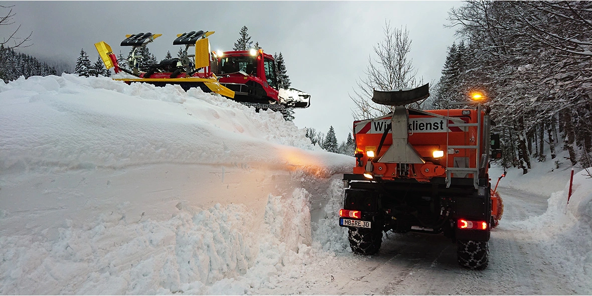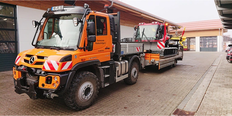 Framed by an imposing Alpine backdrop, the parish of Rottach-Egern lies on the southern shore of the picturesque Lake Tegernsee. The beauty of nature and the amenities of the spa town attract visitors from all over the world all year round. Where others go on holiday, two Unimog trucks from the town's works yard are reliably used in all manner of operations – at any time of the year and in any weather.