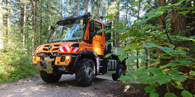 The maintenance of the numerous mountain hiking trails and the upkeep of the forest tracks are also on its agenda. The talented climber cleans up where others break into a sweat. "These routes have climbs of as much as 85 %. But those are precisely the conditions in which the Unimog feels truly at home," explains Tobias Maurer enthusiastically.