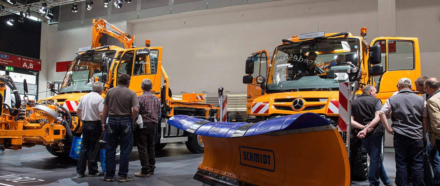 In the video Jan Debler, Segment Manager Municipal/Agriculture/Fire-fighting at Mercedes-Benz Special Trucks, presents two different Unimog and points out their qualities: firstly a Unimog with a front reach arm by MULAG and a stump grinder for the milling of tree stumps and secondly a Unimog for winter services with a snow blower and a spreader by Schmidt.