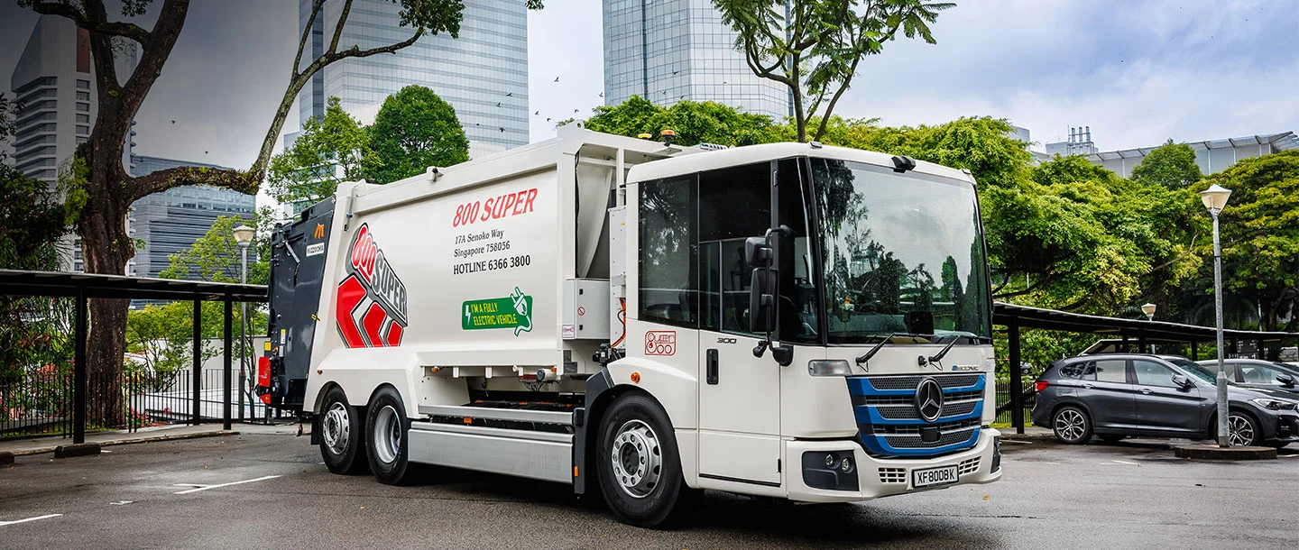The eEconic marks the start of a new chapter in urban waste disposal for Singapore. Environmental service provider 800 Super Holdings has chosen to use the all-electric vehicle from Mercedes-Benz Trucks, taking a major step towards emission-free mobility.
