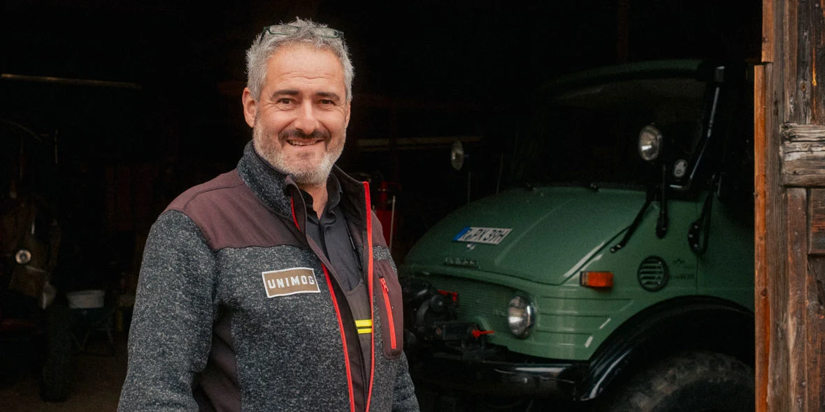 His father was the first farmer in Kappelrodeck to use a Unimog – the U 411 with 32 hp and three-way tipper was as much a part of the farm as the tractor and hay fork.