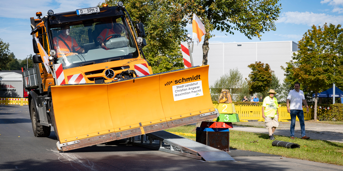 Both a Unimog U 427 and a Unimog U 530 took on the challenge. The vehicles were provided by KLMV GmbH. The municipal and construction machinery company from Oberkotzau also introduced all drivers to the UNI-TOUCH® operating system, which contributed to the smooth running of the event.