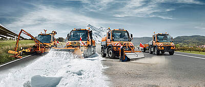 St. Johann, Kirchbichl, Graz: The Unimog factory experts regularly travel to Austria for the Unimog Service Days. The participating Unimog Service Partners offer an opportunity for important vehicle checks. Each customer vehicle under scrutiny receives the "Service Days Guarantee Badge" as a visible sign of the condition check.