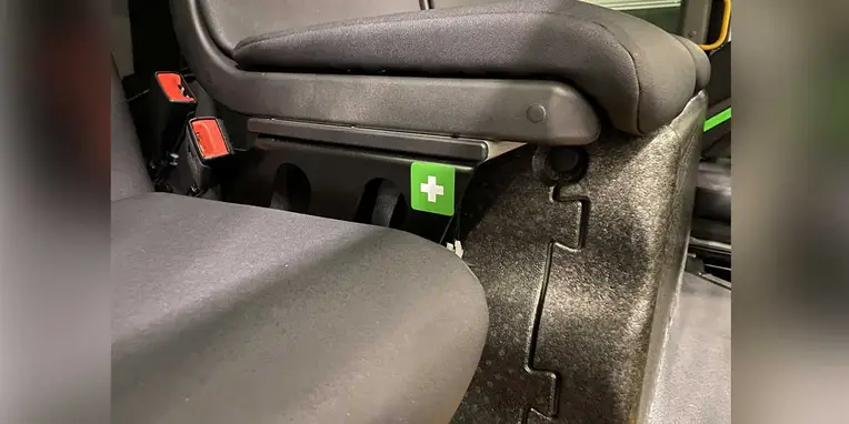 El aislamiento térmico del túnel del motor consta de un dispositivo de amortiguación de tres piezas de espuma de partículas de EPP. Está instalado en el centro del habitáculo de la cabina, directamente bajo el asiento central. La solución diseñada de fábrica por nuestro equipo de expertos de Daimler Truck garantiza que el calor del motor se aísle de forma eficaz a partir de ahora.