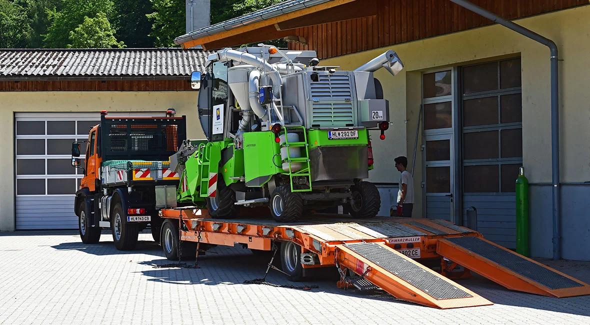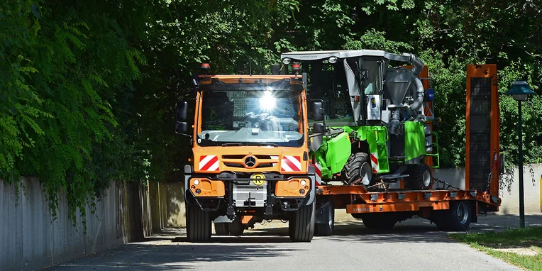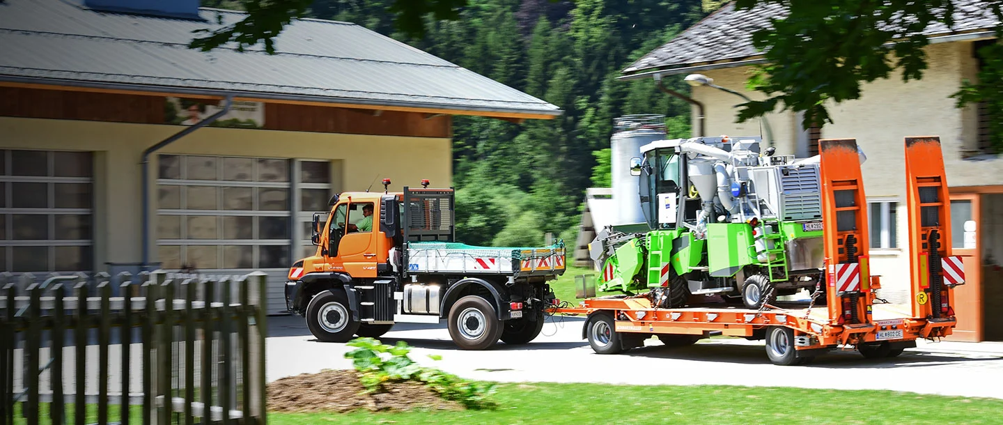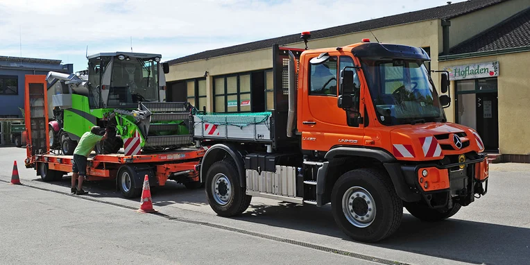 Franz Ecker, director técnico y coordinador de tecnología de pruebas de la región de Baja Austria, ha probado ya unos cuantos vehículos para el transporte de sus máquinas agrícolas, entre ellos, un Unimog de segunda mano. El vehículo multiusos de Mercedes-Benz destacó tanto en la práctica, que compraron un Unimog U 430 nuevo, hecho a medida de las necesidades de la LFS gracias al concesionario Pappas.