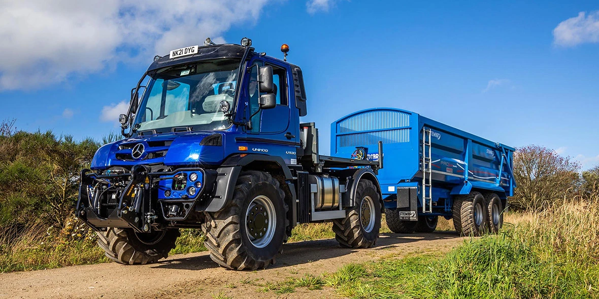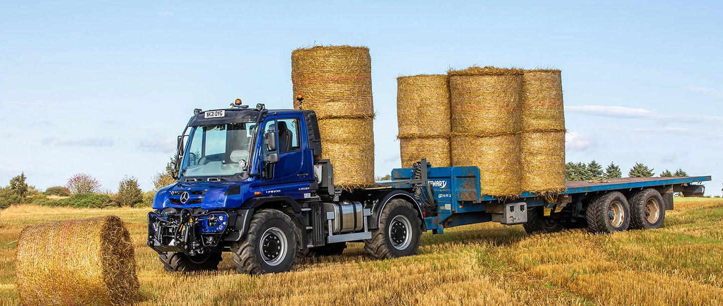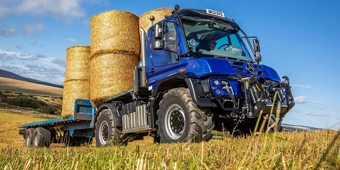 El Unimog no solo supera al tractor en cuanto a consumo, confort y maniobrabilidad. Con una velocidad de crucero de 90 km/h en carretera, también es más rápido y económico. Además, ofrece una excelente aptitud para todoterreno y una gran versatilidad. A eso hay que añadir una garantía de tres años en caso de compra nueva. Así pues, no es de extrañar que Brian Greig esté tan satisfecho con el Unimog.