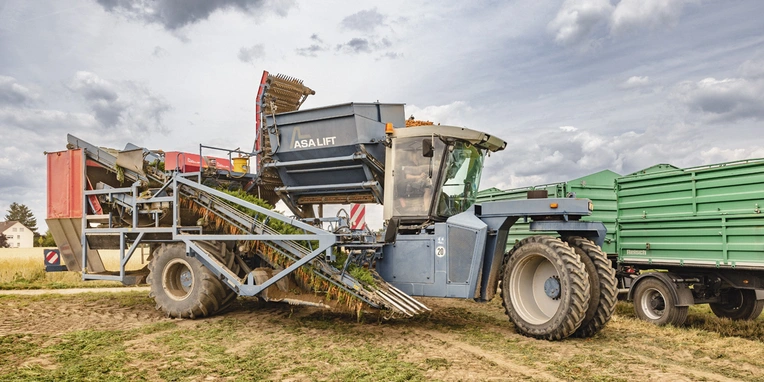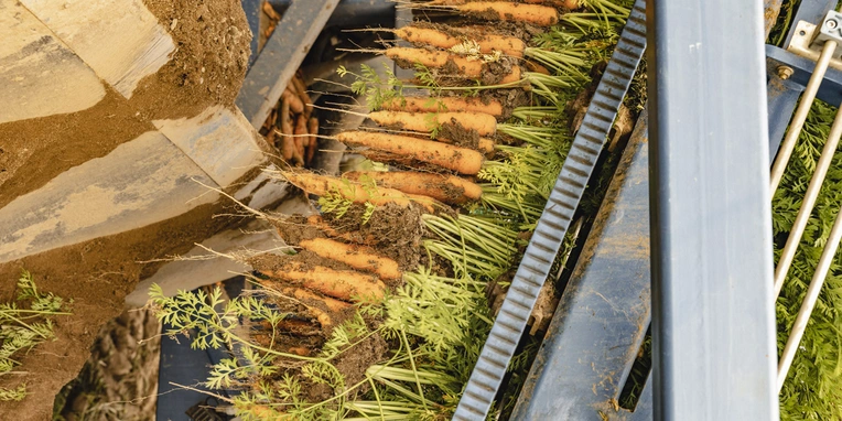 Durante la época de la cosecha, hasta 600 personas trabajan aquí contando con los temporeros. La empresa, fundada hace 25 años por Karsten Großhans, gestiona casi 800 ha. Entretanto, su hijo Dennis, de 25 años, se ha incorporado a la empresa como horticultor. Junto con su padre y su madre Petra, dirigen su empresa, que cultiva hortalizas de junio a marzo. Los rábanos, las patatas y las cebollas son otros productos cultivados por la familia Großhans. "Si cosechamos una zanahoria hoy, ésta llega al supermercado en 24 horas. En cualquier lugar de Alemania", explica Dennis Großhans.