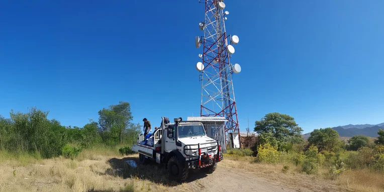 Radiolink ha equipado el Unimog con un cabrestante, una iluminación potente y la más última tecnología de radiocomunicación. Por lo tanto, no es únicamente un vehículo de transporte, sino también un vehículo de rescate y una central de intervención móvil. Incluso cuando se trata de construir parques solares o transportar materiales para torres de telefonía celular en terrenos inaccesibles, no hay nada mejor para Roberto Vargas.