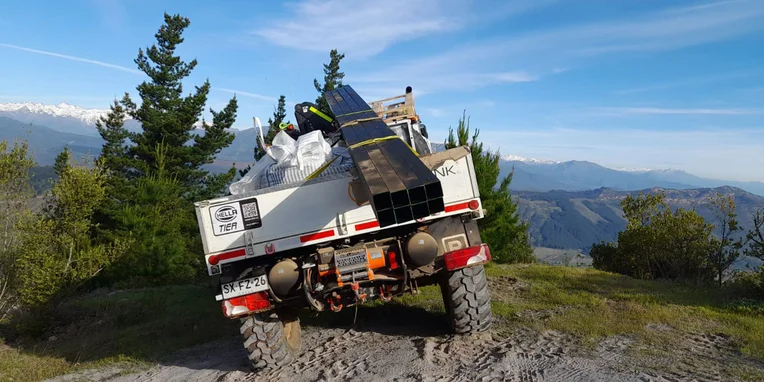 Durante años, el equipo se abrió camino con quads, buggys todoterreno y motos de nieve por los terrenos difíciles. Sin embargo, con estas máquinas, Radiolink siempre llegó a los límites de lo posible. Esto cambió cuando se tomó la decisión a favor de un Unimog U 4000. El vehículo todoterreno con carrocería especial del fabricante chileno Proyect Service fue entregado por la agencia general Unimog Kaufmann. Y estaba listo para funcionar inmediatamente.