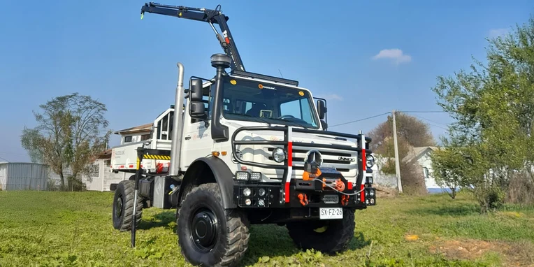 Roberto describe su elección con palabras claras: «más versátil que un camión de tracción integral estándar, más económico que un helicóptero». Con una distancia entre ejes de 3.850 mm, una altura libre sobre el suelo de 385 mm y un ángulo de ataque/de salida de hasta 44°, el Unimog U 4000 sube pendientes en las que otros vehículos fracasan. La tracción integral acoplable, el sistema de regulación de la presión de los neumáticos y los ejes pórtico proporcionan la máxima tracción sobre suelos no compactados.