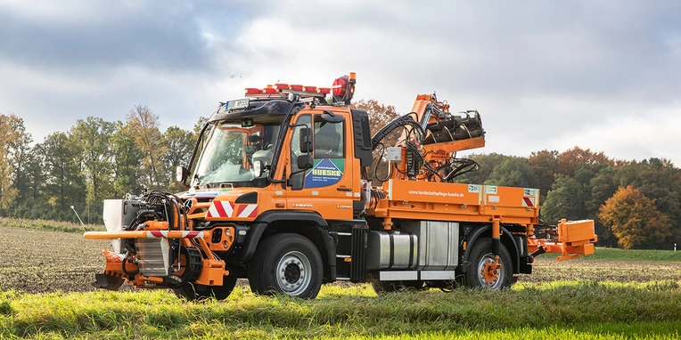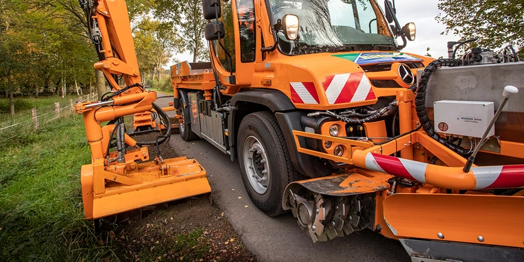 Cuando sus amigos se ríen y dicen que Michael Hueske «se pasa de la raya trabajando», no se ofende en absoluto. Y es que la verdad es el área de trabajo de su empresa está al otro lado de la línea delimitadora de la calzada. Concretamente: el equipo de conservación del paisaje de Hueske, de Ahaus, mantiene en orden los arcenes de todas las carreteras de la región. Desde el carril bici hasta la autopista, los empleados se encargan cuidar los arcenes, en los que se acumulan suciedad y hierbas, para que siempre cumplan su función.