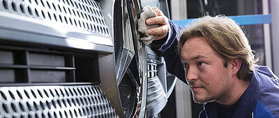 «Zona de pruebas - ¡Peligro de muerte!» está escrito en letras blancas en el viejo cartel de hojalata de la zona de pruebas de Daimler Truck AG en Ötigheim. El polvo se arremolina en el fondo. Un Zetros 6x4 amarillo pasa zumbando. Potente e imparable, el gigante todoterreno se abre paso, afrontando sin esfuerzo baches, hoyos de barro y pendientes extremas.