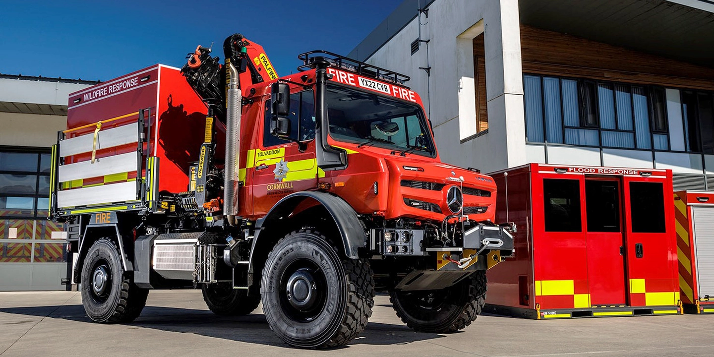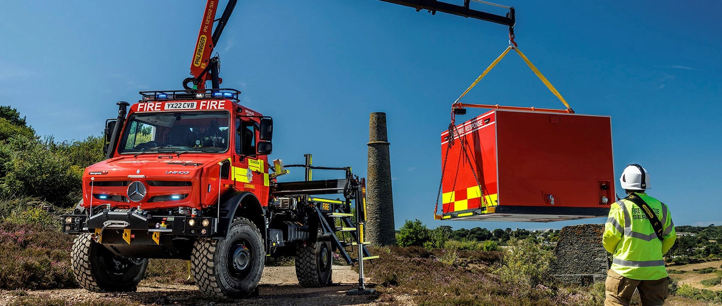 Mark Salter, jefe de grupo de Cornwall Fire & Rescue Service, está convencido de que la reciente incorporación a la flota mejorará en gran medida la flexibilidad de los equipos de salvamento: «El Mercedes-Benz Unimog fue la base obvia para este vehículo nuevo y altamente especializado», informa. En vista de los terrenos impracticables de Cornwall, el excepcional rendimiento todoterreno era absolutamente imprescindible, y ningún otro vehículo con una capacidad de carga similar puede hacer frente a la capacidad "todoterreno" del Unimog».