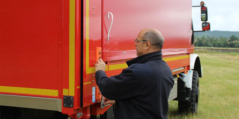 El Unimog puede vadear a una profundidad de hasta 1,2 m sin ningún tipo de limitación. Esto era especialmente importante para el cuerpo de bomberos de Hildesheim. Ya que, de este modo, también es posible evacuar personas que han quedado atrapadas por masas de agua. Un trabajo que, de otro modo, solo podría realizarse desde el aire.