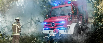 En estos casos, los bomberos necesitan un vehículo fiable que tenga una gran capacidad de vadeo, que no se acobarde ante ningún tipo de terreno y que pueda transportar personas y maquinaria de forma segura. Estos requisitos están hechos para el Unimog.