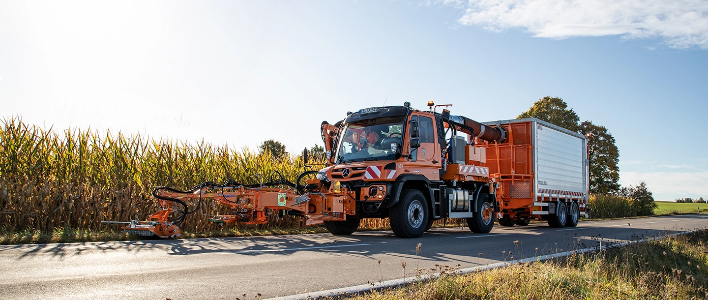 El distrito de Landsberg mantiene las carreteras en perfecto estado. Los responsables: los dos Unimog de la oficina de construcción del distrito. 200 kilómetros de carreteras del distrito y otros 200 kilómetros de carreteras comarcales: el área de aplicación del Unimog U 500 municipal y el U 530 adquirido el otoño pasado se ve claramente. Segar, barrer, trocear, lavar postes, realizar el servicio de invierno: los 16 miembros del equipo de la oficina de construcción que dirige Jürgen Albert cuidan su hogar con pasión. «Siempre nos ha gustado el Unimog», sonríe Jürgen Albert. «Ya no entendemos el servicio municipal sin el vehículo», comenta el hombre.