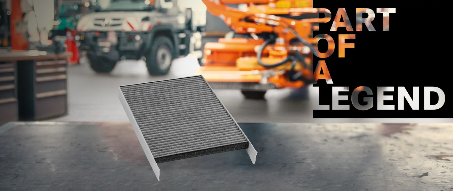 El filtro de carbón activado original es un filtro combinado. Además de las partículas más ínfimas, filtra también olores y gases nocivos como el benceno o el ozono del aire del habitáculo. Por ello, su uso está especialmente recomendado en vehículos Unimog sometidos a cargas extremas como, por ejemplo, en el segado o en el sector agrario.