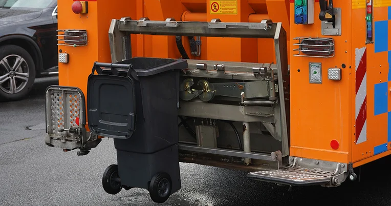 Un Econic équipé d’une installation de lavage de poubelles assure la propreté des conteneurs à déchets.
