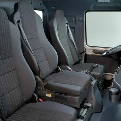 Le poste de conduite confortable et parfaitement adapté à l’utilisateur facilitent le travail du conducteur et de l’équipage. Par exemple, en plaçant les éléments de commande à une portée optimale et en utilisant des matériaux robustes qui résistent à une utilisation intensive.