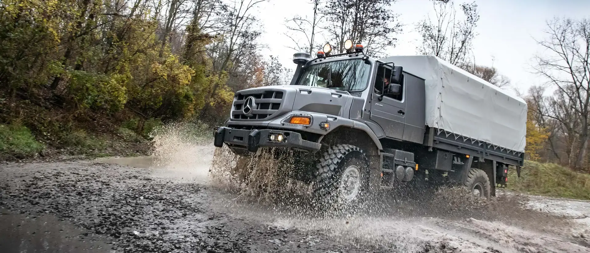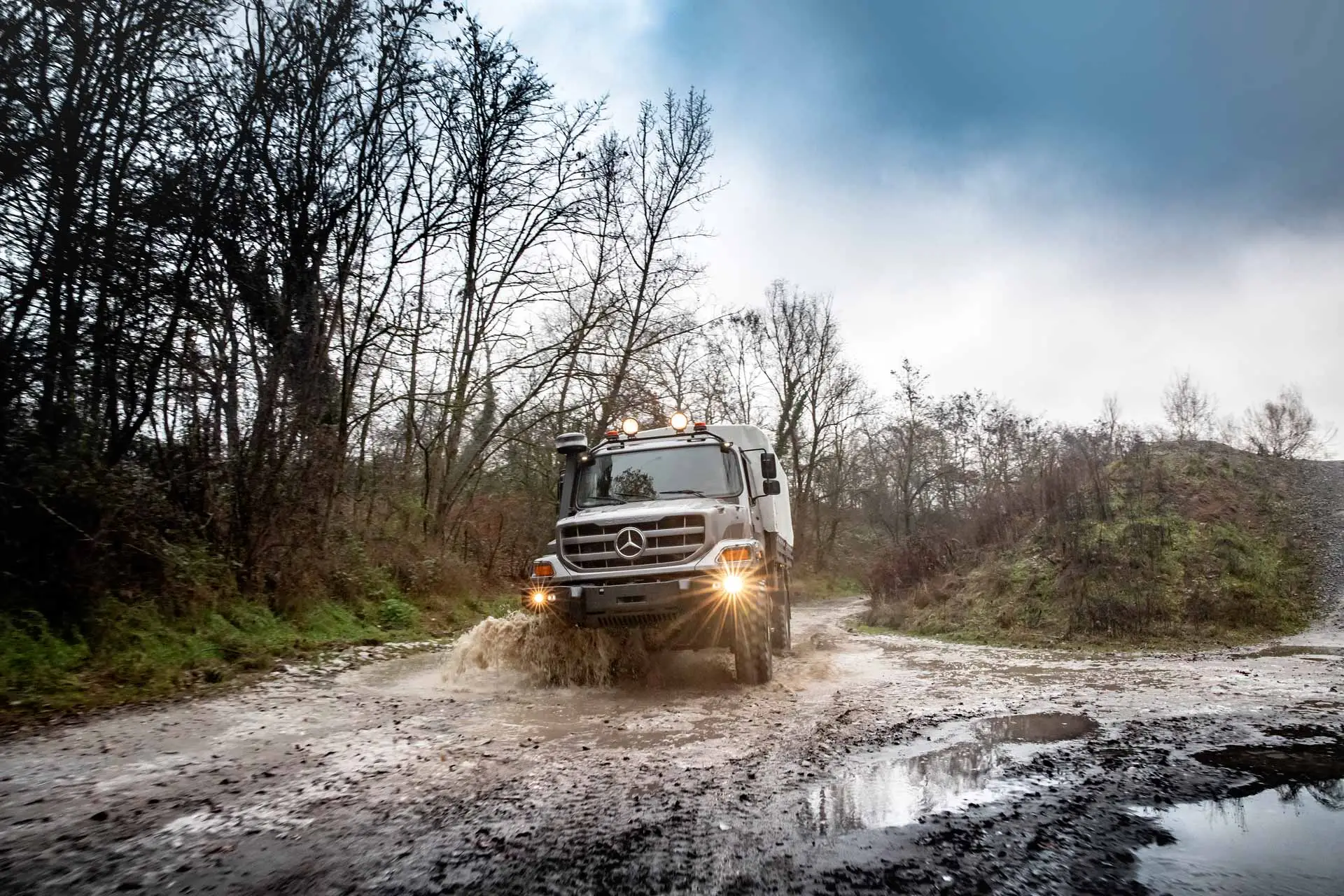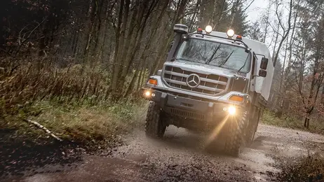 Le Zetros maîtrise toutes les routes. Et des trajets en dehors de la route. L’emblématique professionnel du tout-terrain séduit par la qualité exceptionnelle de Mercedes-Benz Trucks et est plus performant et polyvalent que jamais. Efficace, robuste, facile à utiliser et à l’aise sur tous les terrains : Le Zetros est conçu pour les missions difficiles.