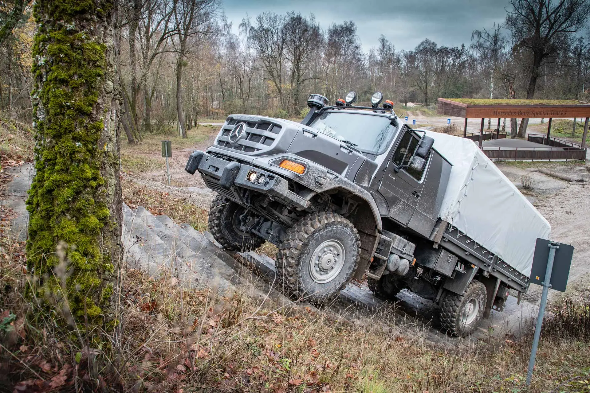 Il s’affronte en tant que géant tout-terrain. Un véhicule d’origine tout-terrain, un héros des obstacles. Sa mission : arriver à destination. Le Zetros ne se contente pas d’emmener son équipage du point A au point B, il se fraie un chemin jusqu’au point Z. Il le prouve sur le terrain de démonstration de Mercedes-Benz à Ötigheim, qui propose quelques-uns des défis tout-terrain les plus difficiles.