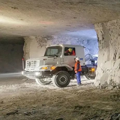 Le Zetros transporte les engins de forage, les produits miniers, les matières premières, les provisions et (s’il est équipé d’une cabine double en option) toute l’équipe à destination. Grâce à sa faible hauteur, il passe également par des tunnels bas et des galeries souterraines. La protection anticorrosion intégrale et le système de refroidissement renforcé du capot garantissent des performances optimales, même dans des conditions extrêmes.