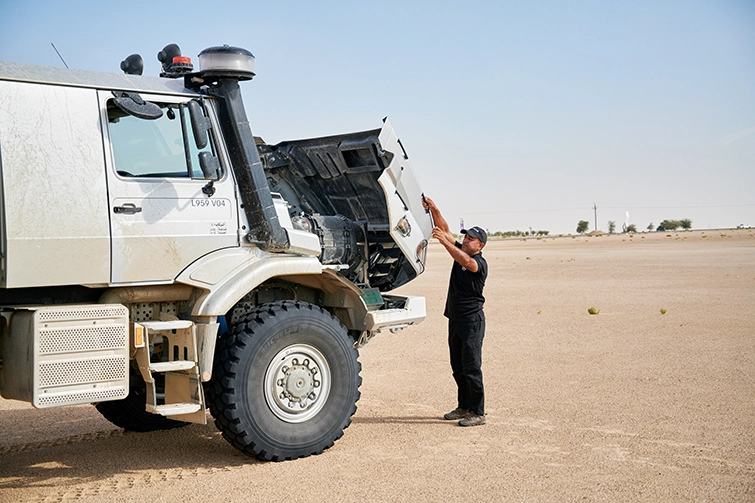 Un camion fiable est un must pour les aventures dans le désert, dans la neige et hors des sentiers battus. La technique robuste et l’électronique conviviale du Zetros en font le compagnon de voyage idéal pour les régions difficiles. Autres avantages : ses longues intervalles de maintenance, ses conditions de réparation simples et ses pièces de rechange disponibles dans le monde entier.