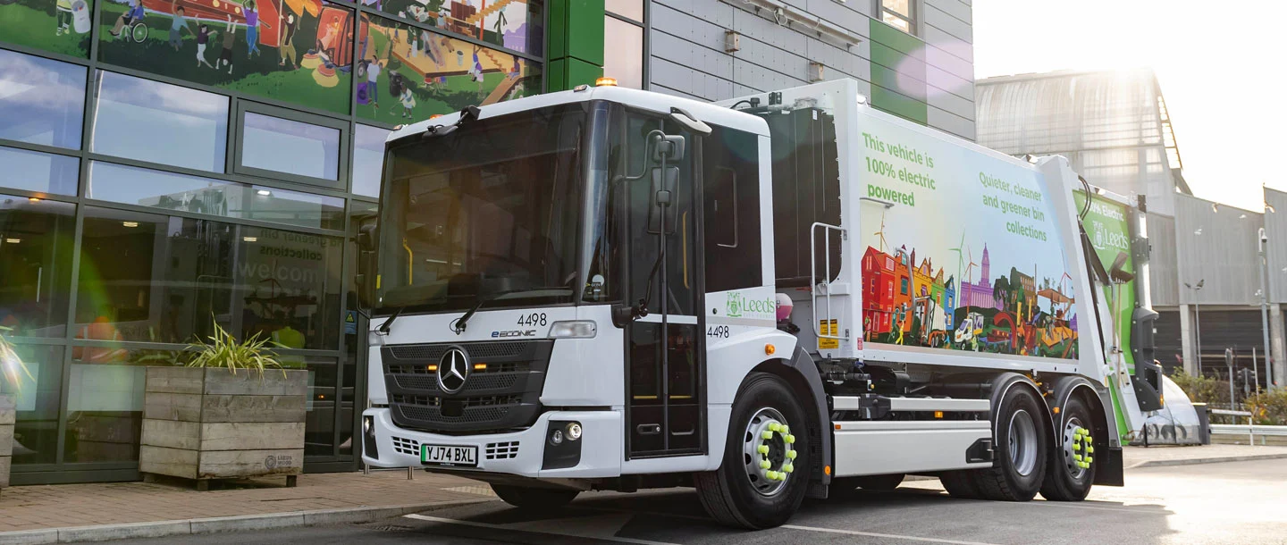 Leeds, la grande ville de la région métropolitaine anglaise du West Yorkshire, est un symbole fort de gestion des déchets respectueuse de l'environnement. Trois Mercedes-Benz eEconic entièrement électriques renforcent la flotte communale – silencieux, sans émissions et dotés de la technique la plus moderne. L'électricité est désormais utilisée au lieu du diesel. Cela permet d'économiser beaucoup de CO₂ chaque année et d'améliorer la qualité de l'air dans la ville.