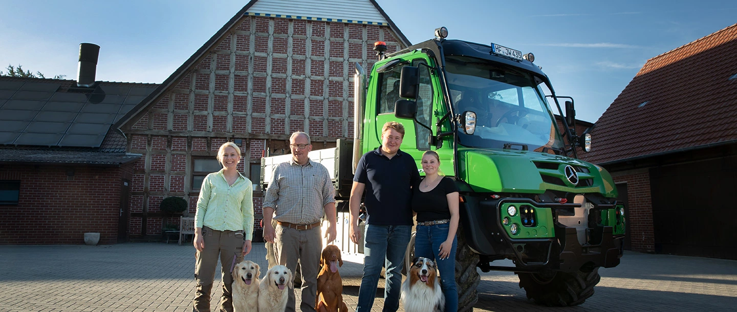 « Il était déjà établi au préalable que l’Unimog devenait le véhicule de tête », sourit Jobst Weitkamp. Il dirige une exploitation agricole et exploite 230 ha de terres agricoles. Les Weitkamp cultivent l'orge, le blé, le colza, les betteraves et le maïs. Le deuxième homme de l’entreprise est le fils Jan Philipp. Une équipe de huit personnes soutient l’attelage père-fils dans ses activités quotidiennes.