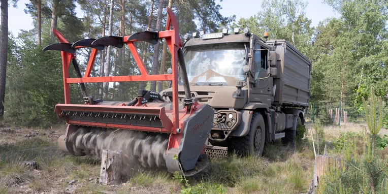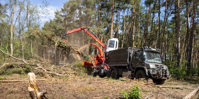 Paul Wolf de Kloster Lehnin s'est fait un nom avec son entreprise d'abattage d'arbres, d'entretien de bosquets et de production de bois de chauffage. Avec son nouvel Unimog U 535, ce jeune homme de 35 ans mise sur la qualité et l'efficacité. De la scieuse automatique mobile à la puissante grue arrière Stepa, son équipement est impressionnant. Le parcours de Paul Wolf a commencé avec un chauffage à bûches et s'est transformé en une entreprise florissante dans la région de Berlin, du Brandebourg et du Mecklembourg.