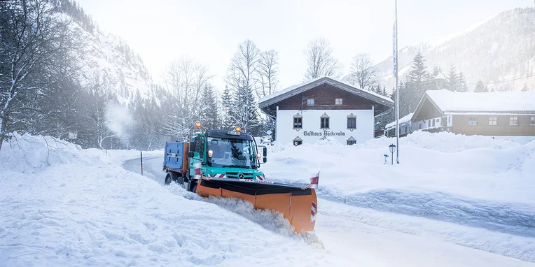 Martin Storr accueille un nouveau talent au sein de sa flotte. Peu après son entrée en fonction, il a pu constater les incroyables performances de l'Unimog dans des conditions difficiles. En effet, en janvier, la commune de Bayrischzell a été déclarée zone sinistrée après d'abondantes chutes de neige.
