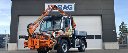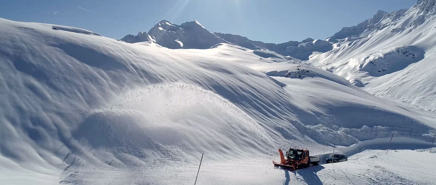Avec ses nombreux équipements rapportés et superstructures, l'Unimog a tout ce qu'il faut pour le service hivernal. Sur le col du Rombo, il s'attaque aux monticules de neige avec une fraise à neige Kahlbacher. Ses performances ne passent pas inaperçues auprès des habitants et des touristes.