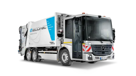 L'eEconic de Mercedes-Benz a été conçu pour les tâches communales exigeantes, comme le prouve son utilisation en tant que véhicule de collecte des déchets à l'aéroport de Zurich. Là-bas, on mise depuis des années sur l'Econic, et désormais également sur la version entièrement électrique.
