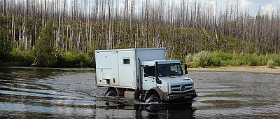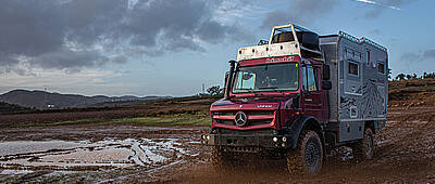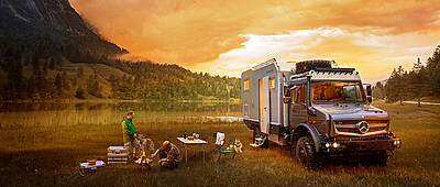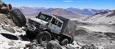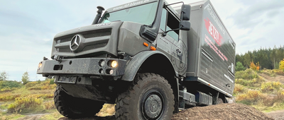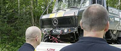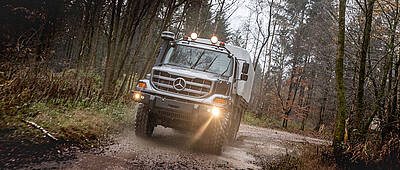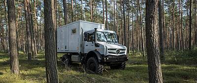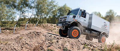 En pleine forêt, à la frontière entre la Bavière et la Thuringe. Le moteur six cylindres retentit à travers les bois. Les oreilles averties auront reconnu l'OM 936, le moteur en ligne de près de huit litres de Mercedes-Benz. Tout à coup, un Unimog de la série 5000 surgit d’entre les arbres. Grâce à ses pots d'échappement surélevés et chromés, le « Mog » fait fièrement retentir sa puissance de 300 chevaux et son couple maximal de 1 400 Newton-mètres. Le conducteur affiche un grand sourire.