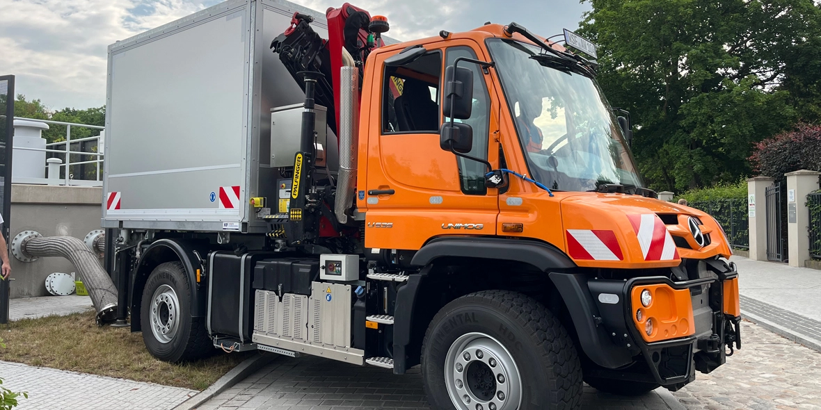 Après des recherches intensives à l’université technique de Dresde, Axel Marx et son équipe ont mis au point une installation de pompage mobile - sur la base d’un Unimog U 535 de couleur orange foncé avec un empattement long (3 900 mm) et 354 CV.