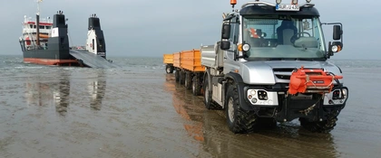 L’Unimog a une profondeur de gué gigantesque et, dans notre cas, il est totalement autonome.