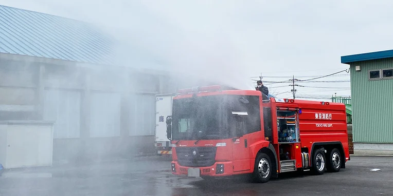 Les bouches d’incendie du système de distribution d’eau sont souvent difficilement accessibles, ce qui entrave les interventions des pompiers en cas d’incendie. Mais en cas d’urgence, chaque seconde compte et un camion pompe-tonne est alors un avantage décisif : "C’est tout simple - avec l’Econic, les pompiers peuvent agir plus facilement", explique Masanori Sato de l’Y-Engineering Company Ltd., qui distribue les camions spéciaux de Mercedes-Benz sur le marché japonais. "Les pompiers arrivent sur le lieu d’incendie et peuvent commencer immédiatement à éteindre l’incendie sans devoir établir un raccordement à la bouche d’incendie souvent bloquée par le trafic." Cela permet de gagner du temps jusqu’à ce que d’autres véhicules de lutte contre les incendies soient reliés aux conduites sur place.