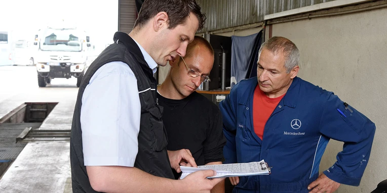 Lors des journées S.A.V. Unimog 2016, des présentations produits, des exposés, des essais et des formations produit figuraient au programme. Des collaborateurs de Mercedes-Benz Special Trucks et des visiteurs font part de leurs impressions.
