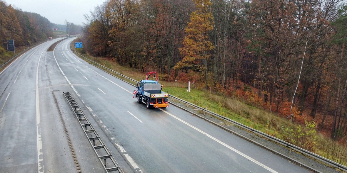 L’Unimog WaVe est en route pour la Haute-Franconie, il va à Bayreuth. Pas au célèbre festival de Wagner, mais dans un endroit qui semble nettement moins spectaculaire au premier abord : un tronçon d’autoroute fermé. Mais sur ce trajet entre Bayreuth et Bamberg, il se passe quelque chose de plus spectaculaire qu’on ne le pense.