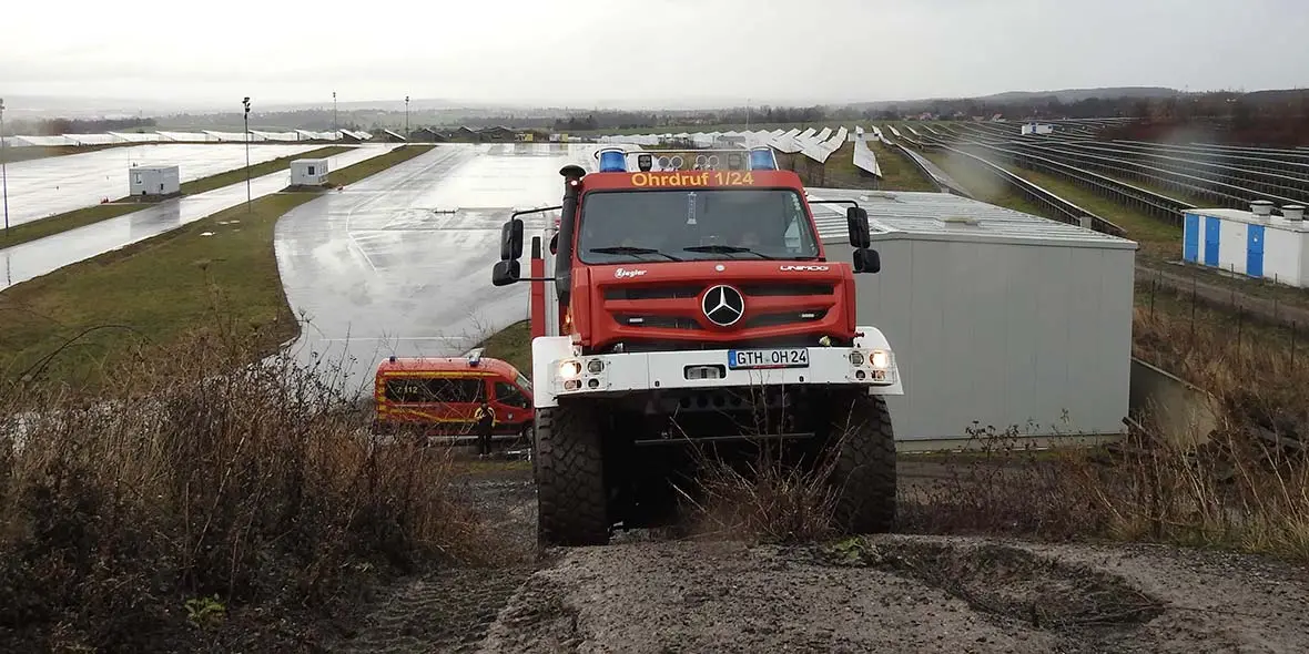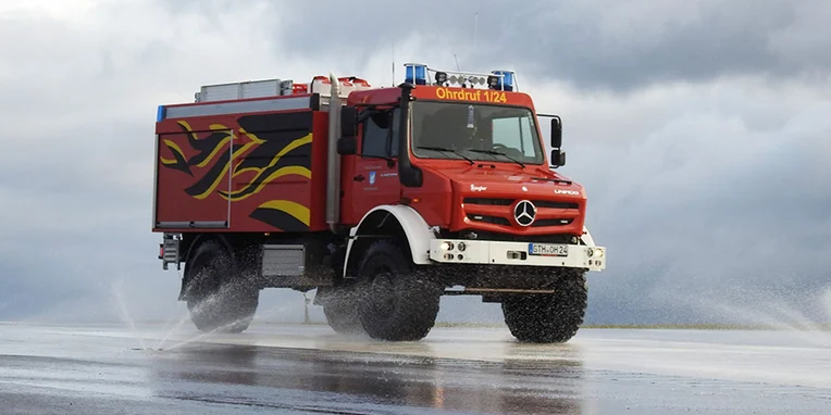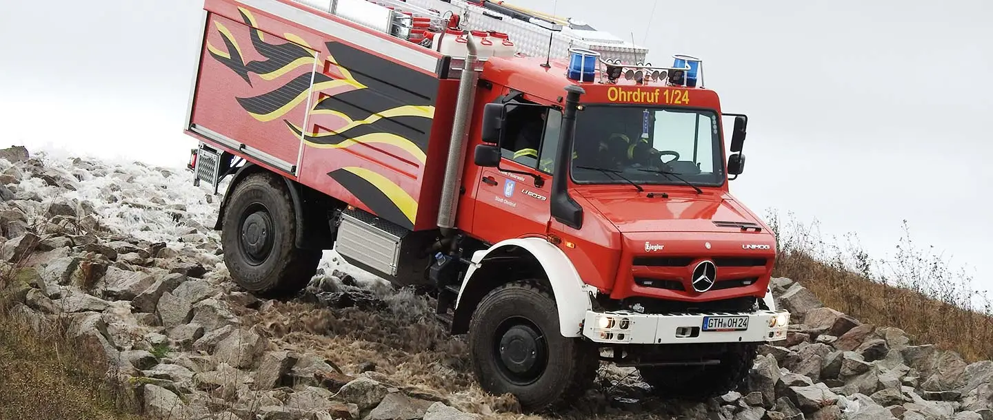 I Vigili del fuoco volontari di Ohrdruf sono reduci da una serie di interventi antincendio ad ampio raggio effettuati nel circondario di Gotha: le insidie dei numerosi incendi boschivi che durante il 2019 hanno colpito il Land della Turingia hanno ripetutamente chiamato all'azione i 50 volontari del corpo di pronto intervento. Inoltre, dopo il ritiro dei vigili del fuoco del luogo, per la squadra è subentrata anche la responsabilità del vicino campo di addestramento. Ad affiancare i volontari nello svolgimento di tutte le loro mansioni c'è un fidato compagno: un Unimog fuoristrada, che convince tutti grazie alle sue doti di resistenza e alla capienza del serbatoio.