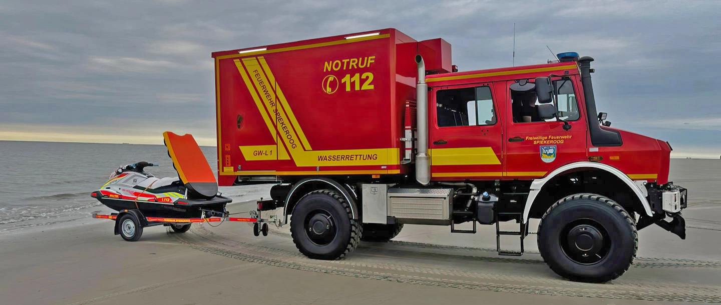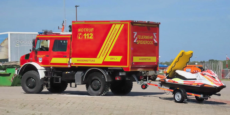 Il motivo del nuovo acquisto è illustrato nel piano dei requisiti del servizio antincendio: "Ci può essere solo un veicolo che non ha difficoltà a portare in acqua le due moto d'acqua di soccorso in modo rapido e sicuro". Le moto d'acqua di soccorso sono chiamate anche jetski. A Spiekeroog le due moto hanno due nomi propri: Frieda e Walter.